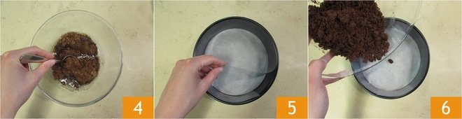 Mix well 4 until you get a homogenous mixture. Line the base of a 8 inch (20 cm) diameter pan lined with parchment paper and with a strip of acetate on the edges 5. If you do not have acetate, you can also use parchment paper. Pour the cookies mixture in it 6.