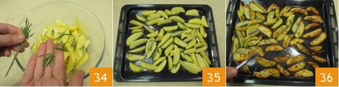 place them in a bowl, season with oil, salt, garlic, and rosemary 34, then place them on a baking sheet 35 and bake in a ventilated oven at 425°F for 50 minutes or until well roasted 36.
