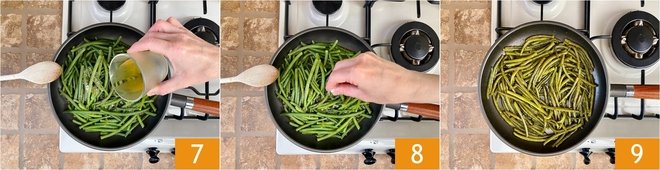 Separately in a pan toast the pine nuts over low heat 10. Pour the green beans into a salad bowl 11, add the pine nuts 12 on top and let them cool before serving.