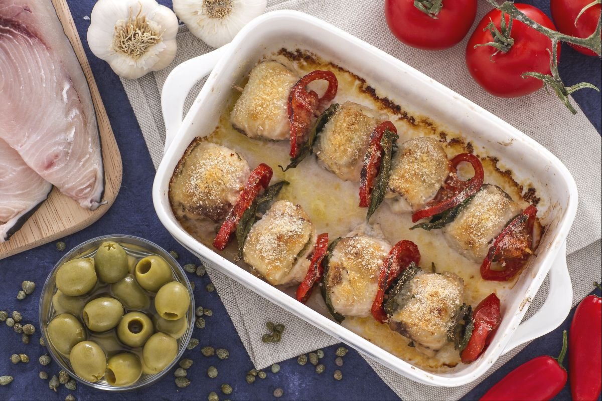 Swordfish rolls are a traditional summer dish in Sicily, particularly of Catania. Swordfish rolls are prepared with thinly cut slices of swordfish and a filling with simple yet very tasty ingredients such as capers, olives, breadcrumbs, and tomatoes. Swordfish rolls pair well with many side dishes. An example? Peppers with capers or the famous scapece-style zucchini! These delicious morsels, also called "braciolettini" in some places, are such a popular dish that there are several variations of the recipe, some of which use pecorino cheese and pine nuts for the filling.