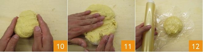 Push it back together 10 and repeat by squeezing it with the your hand 3 more times 11. Form a ball and cover it with plastic wrap 12, then set it to rest in the fridge for at least 30 minutes. Meanwhile, prepare the apples.