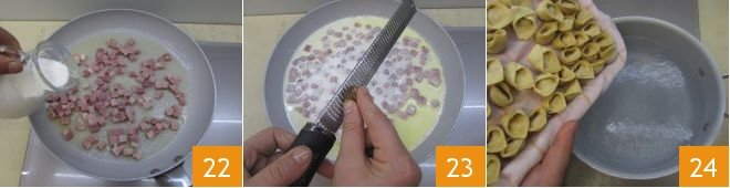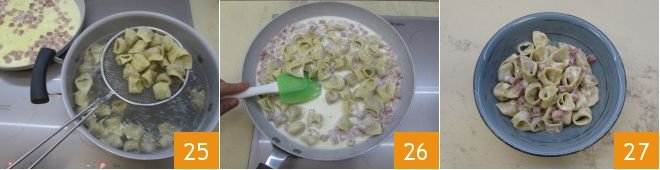 When they are cooked, drain 25 and transfer them to the pan with the sauce 6. Stir briefly over low heat then serve the tortellini with ham and cream sprinkled with grated Parmesan cheese if you like 27!