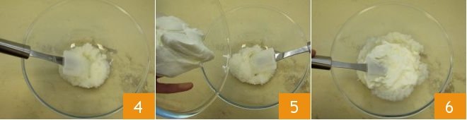 Once blended, transfer the daikon to a bowl 4 and add the Greek yogurt 5, mix well 6 to get a homogeneous sauce, season with salt and pepper. Set aside.