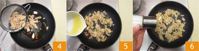 Add the drained tuna 4. Cook the tuna over high heat for 1 minute, stirring occasionally, then deglaze with the lemon juice 5 and continue cooking for a couple of minutes. Turn off the heat, salt to taste 6, and set aside.