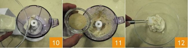 In the meantime, prepare the cream. Pour the tofu into a blender 10 and blend it until it becomes creamy; also add the brown sugar and blend again until the sugar has blended with the tofu 11. Put the mixture you have obtained into a large bowl 12.
