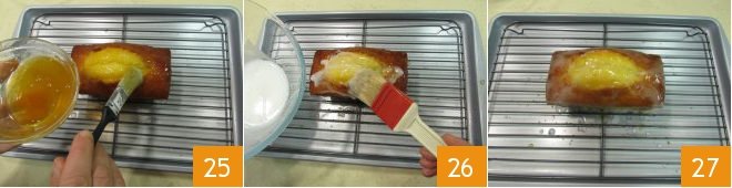 Brush the pound cakes with jam 25 and then with the icing 26, covering the sides and the surface 27.