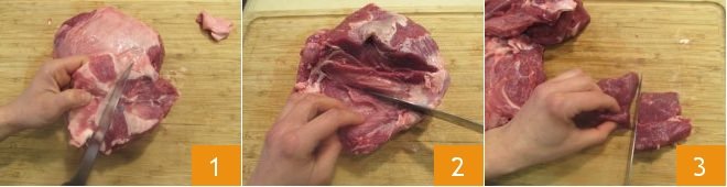 To prepare lamb kleftiko, first clean the leg of lamb: remove the outer layer of fat and connective tissue 1, remove the bone 2 and cut the meat into cubes of about 1 ½ to 2 inches 3: you should end up with about 2 pounds of deboned and cleaned meat.