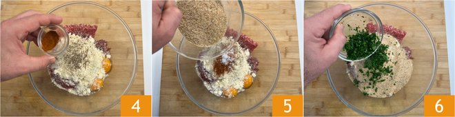 Also add the sweet paprika 4, the breadcrumbs 5 and the chopped parsley 6.