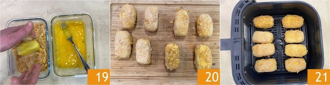 Then roll them in the coating, making sure they are completely covered 19. With these quantities you will get 8 croquettes 20. Place the croquettes on the basket of a 6-liter (about 1.6-gallon) air fryer 21.