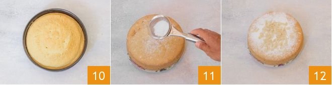 Once cooked, remove the cake from the oven 10 and let it cool. Decorate the cooled cake with powdered sugar 11 and almond flakes 12. Your almond milk cake is ready to be served.