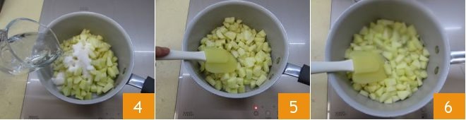 Transfer them into a saucepan along with the water and sugar 4. Let them cook over moderate heat, stirring often 5; it will take about 15 minutes 6.
