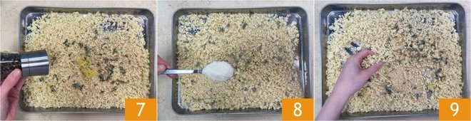 Season with pepper 7 and grated cheese 8, then mix everything well 9.