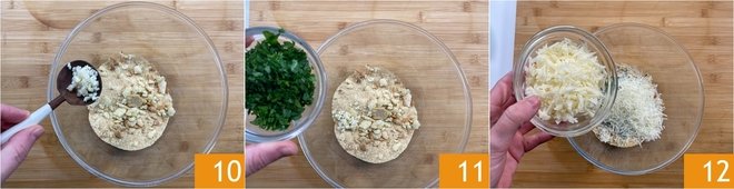 In a bowl, combine breadcrumbs, garlic 10, parsley, and the cheeses 12.