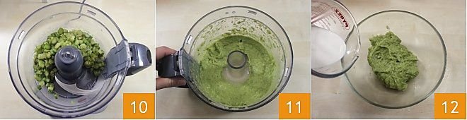 Transfer the cooked sliced asparagus to a blender 10 and blend until you obtain a creamy mixture 11. Transfer the asparagus cream to a bowl and add fresh cream 12.