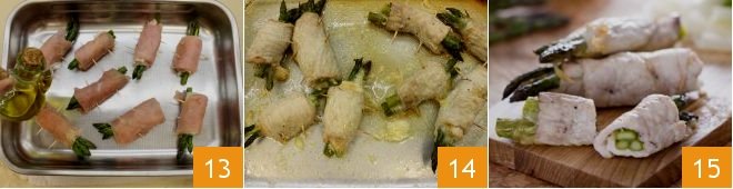then place the asparagus stuffed rolls in a slightly oiled baking dish, then drizzle a little oil on them as well 13 and cook them in a preheated static oven at 356°F for about 7-8 minutes (320°F for about 4-5 minutes if a fan oven). Once cooked, remove them from the oven 14 and serve them hot or warm 15!