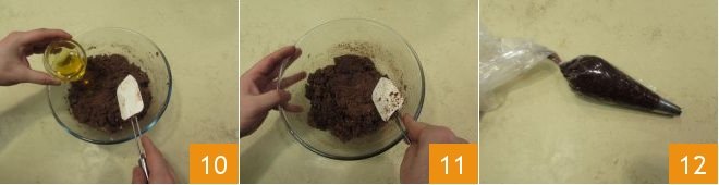 Also add the honey 10 and incorporate it into the dough, continuing to gently mix with the spatula 11. Transfer the resulting mixture into a pastry bag fitted with a star nozzle 12.