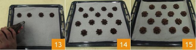 With a light pressure from your hands, recreate small tufts of dough on a baking sheet lined with parchment paper (13-14), obtaining about 45-50 depending on the size you give to each tuft. Bake your cookies in a static preheated oven at 350°F for 15-20 minutes (we do not recommend baking in a fan oven). Once out of the oven 15, let them cool while you prepare the ganache.
