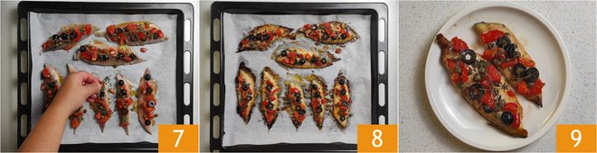 Mix everything together 4. Wash and dry the mackerel fillets, place them neatly on a baking sheet lined with parchment paper, and season with salt 5. Cover each fillet with the dressing, distributing it with a teaspoon 6.