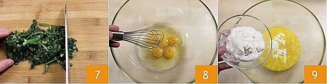and chop them with a knife 7. Now beat the eggs well with salt and pepper 8 to taste, incorporate the fresh ricotta 9 and beat again,