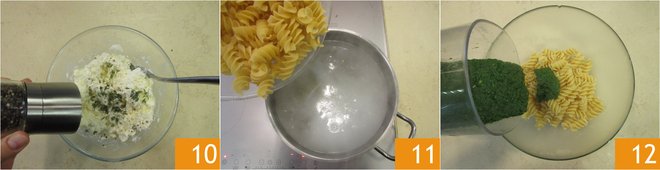 In a bowl, pour the ricotta, add the thyme leaves, a drizzle of extra virgin olive oil, and mix 10. Cook the pasta in plenty of boiling water, salted to taste 11. Drain the pasta al dente in a large bowl, add the spinach cream 12, and a drizzle of extra virgin olive oil.