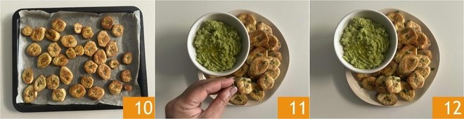 Once the plantain has reached the right golden color 10, remove it from the oven and place it on a serving dish, finish with some fresh parsley 11, serve it with an avocado cream, or guacamole, or with your preferred sauce, and it will be ready to enjoy 12