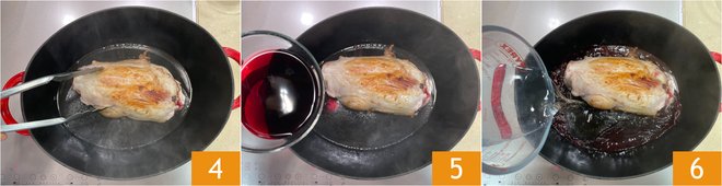 Brown it well on all sides over high heat 4. Adjust with salt and pepper, then deglaze with red wine 5, allow all the alcohol to evaporate, then add the water 6.