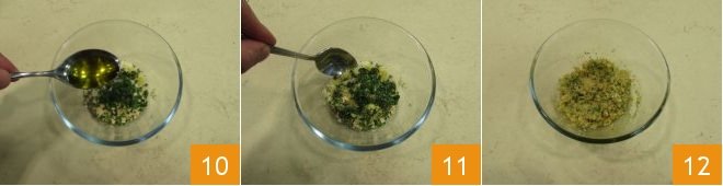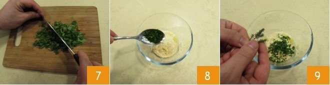 Rinse, dry, and finely chop the parsley 7; then add it to the breading 8 and further flavor with thyme leaves;