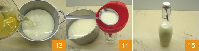 Let it cool, then add the banana-flavored alcohol 13, mix well and transfer the resulting mixture into a liqueur bottle 14. Store your banana liqueur in the refrigerator and serve it chilled 15!