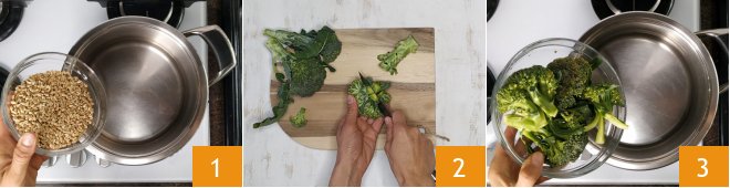 To prepare the barley and broccoli salad, place a pot filled with water over the heat and salt it once boiling before adding the barley 1. Cook for about 15 minutes or according to the times indicated on the package. In the meantime, clean the broccoli: separate the florets and boil them for 10 minutes 3.