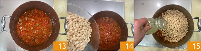 Let it flavor on medium heat for about 10 minutes, stirring gently 16. Salt to taste 17. Your beans all'uccelletto will be ready to serve and enjoy, we recommend serving them hot 18 with a drizzle of extra virgin olive oil, a fresh sprig of rosemary, and a pinch of pepper!