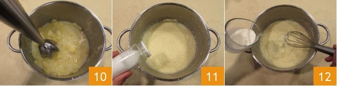 and blend everything 10 until obtaining a puree. Adjust with salt 11 and pepper, then add the cream 12 and mix with a whisk to achieve a creamier consistency.