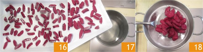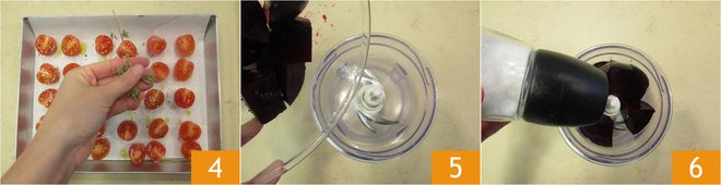 Fragrance with oregano 4 and bake in a preheated static oven for about 1 hour at 320°F. Put the pre-cooked beets in a mixer 5 and add salt 6.