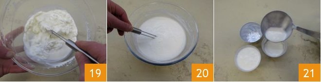 gently mix everything, being careful not to deflate it (19-20). Pour the mixture into 5 molds of 3.5 oz each 21 and let it cool in the refrigerator for 6 hours.