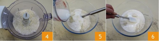 and chop them 4. Transfer the chopped almonds to a bowl, pour in the milk 5, and mix well with a spatula 6