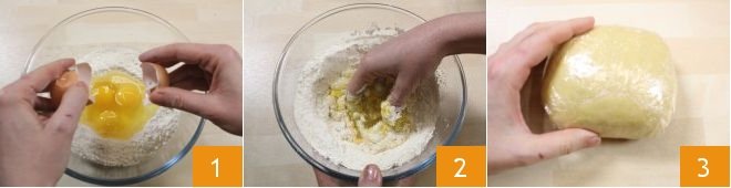 To prepare the bigoli with asparagus, artichokes, and pea pesto, start by making the Homemade pasta (sheets and shapes): in a bowl, pour the flour, create the classic well, and pour the eggs in the center 1. Then start working the ingredients with your hands, gradually incorporating the flour 2. Transfer the dough onto a work surface and knead it for at least 10 minutes until you obtain a smooth and homogeneous mixture. Form a dough ball and wrap it with plastic wrap 3, then let it rest at room temperature for about 30 minutes.