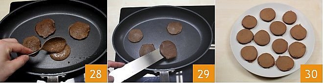 Form small circles with the batter by letting it drip from the tip of the spoon and keeping it always in the center, so as to obtain perfect circles 28. Let them cook for about 1 minute, then flip your blinis to the other side and cook for another 1 minute 29. Once ready, place the blinis on a flat plate to cool slightly, and continue in this way until all the batter is used 30.