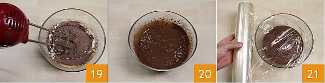 Continue working the mixture with the whisk, starting at the lowest speed 19, until all the ingredients are well combined 20. Cover the bowl with cling film and place the yolk and Nesquik mixture in the refrigerator to rest for at least 1 hour 21.