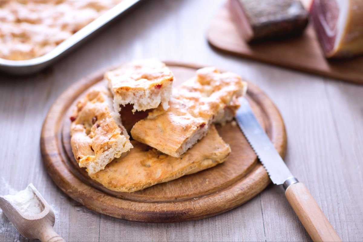 Crescente Bolognese is this classic Italian bacon focaccia that really brings out the local flavors of Bologna, in the Emilia-Romagna region. I mean, this area is known for its rich culinary traditions. And look, this bread is an absolute staple there. People call it crescenta or crescente con i ciccioli, but it's really just a super crispy, moist focaccia packed with savory chunks of prosciutto and pancetta.