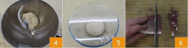 Let the mixer run until you get a homogeneous dough 4. Then transfer the biga to a bowl, cover with transparent plastic wrap, and let it rest at room temperature (or in a turned-off oven with the light on) for about 1 hour 5. After this time, place it in the refrigerator for a minimum of 12 hours up to a maximum of 18 hours to mature the biga. After this time, transfer it again to a turned-off oven with the light on for another 2 hours. Meanwhile, proceed with the preparation of the rising dough: cut the raw ham into small cubes 6.
