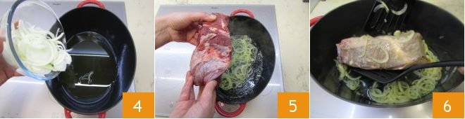 then put it in a pot, preferably cast iron, with the oil 4. Let it stew for 7-8 minutes and add the sirloin 5. Sear it on all sides over medium-high heat 6,