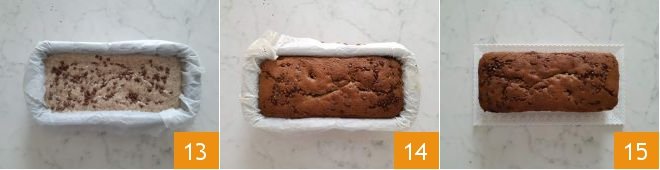 so they sink in 13. Bake the loaf cake in a preheated static oven at 356°F for about 35 minutes. Once cooked, take it out 14 and let it cool before serving 15.