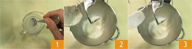 and the water in which you have dissolved the yeast 4. Turn on the machine and work until you obtain an elastic dough. Then add the rice oil 4, the seeds from the vanilla bean 5.