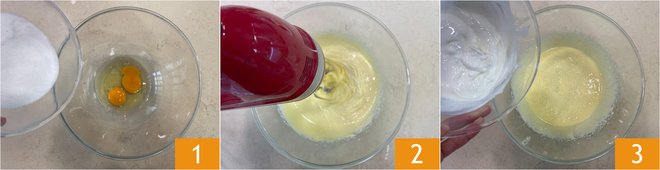 To prepare the cake without yeast, first crack the eggs into a bowl, add the sugar 1, and beat with a mixer 2. Add the yogurt, preferably at room temperature 3.