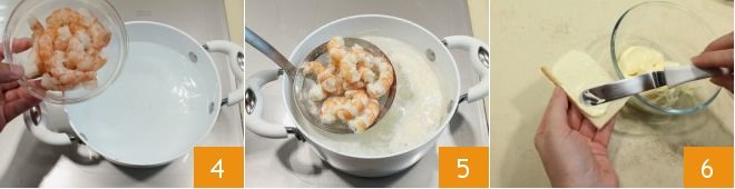 Blanch the shrimp in a pot with plenty of water for about 1-2 minutes 4. When they are ready 5, turn off the heat and drain them. Take a rectangle of sandwich bread and spread the mayonnaise you prepared earlier 6.