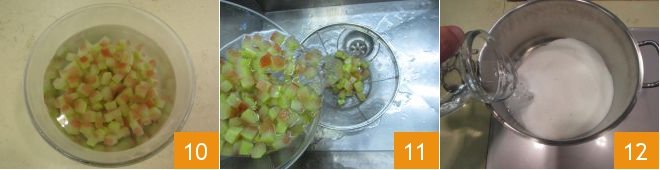 Repeat this process 2 more times 7. On the third and final time, drain the cubes, placing them in a bowl 8 and then cover with plenty of cold water 9.