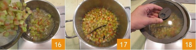 Add the rind cubes 16 and let them cook for about 50 minutes on very low heat, stirring occasionally 17. Once the cubes are candied, turn off the heat, remove any foam on the surface using a skimmer, and then cover with the lid 18.