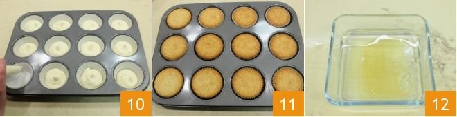 Transfer the mixture to a piping bag and distribute it into the muffin liners with which you lined a 12-cup muffin tin, filling them 2/3 full 10 (this way, the cupcakes will rise to the edge of the liners during baking). Bake the muffins in a preheated static oven at 356°F for 20 minutes (320°F for approximately 15 minutes if using a convection oven). Remove them from the oven once baked 11 and let them cool. While the muffins are baking, prepare the buttercream: in a small bowl, soak the gelatin in a little cold water for at least 10 minutes.
