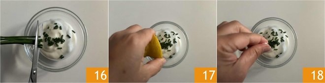 Add the chives 16, lemon juice 17, and salt 18.