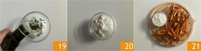 Finally, after adding one last drizzle of oil 19, just mix everything 20. Serve the air fryer carrots with the homemade yogurt sauce 21.