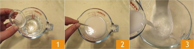 To prepare the torn casatiello, first, add the fresh yeast to the room temperature water 1 and stir to dissolve it 2. Pour the mixture into the bowl of a stand mixer fitted with a hook 3.